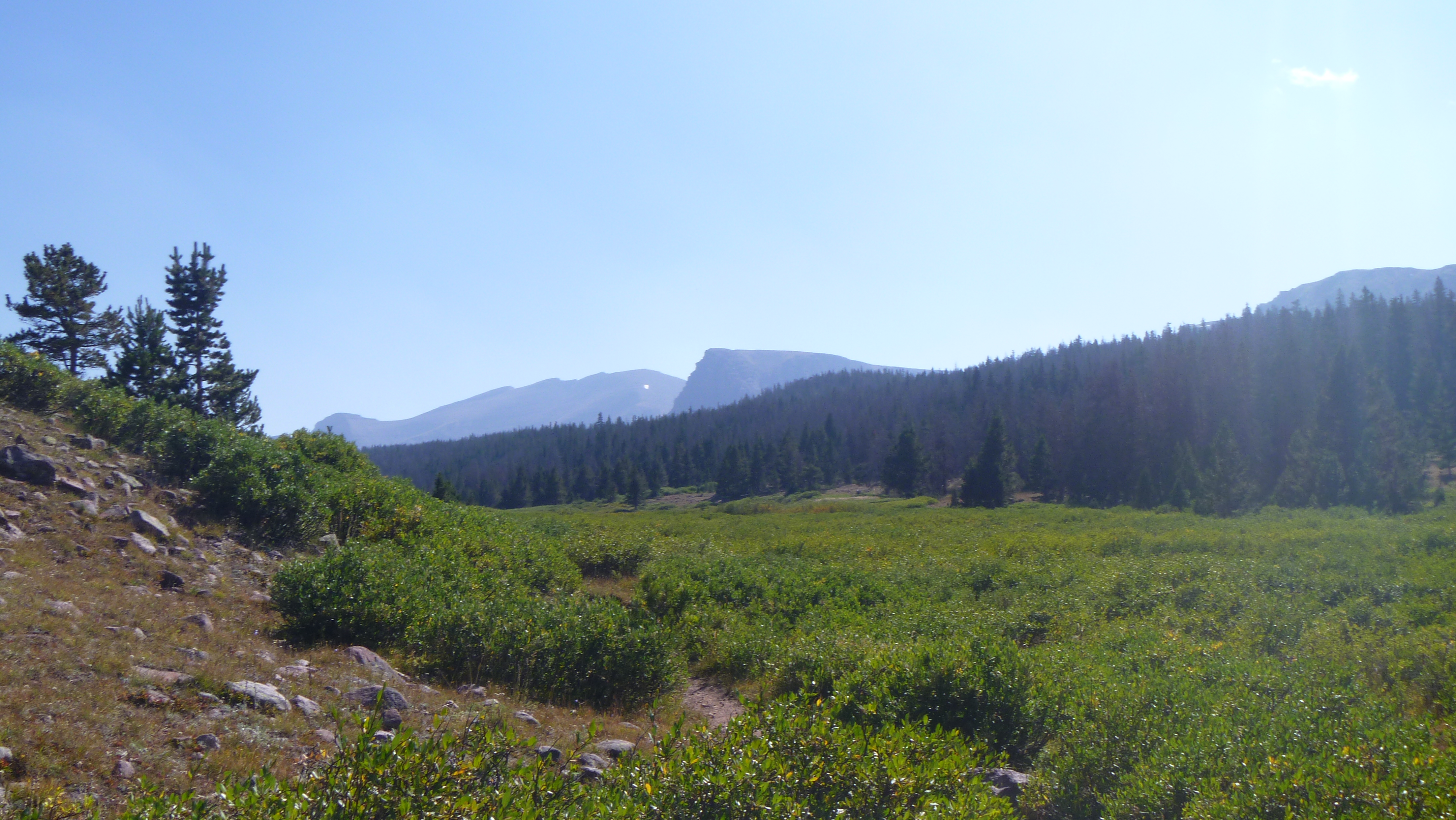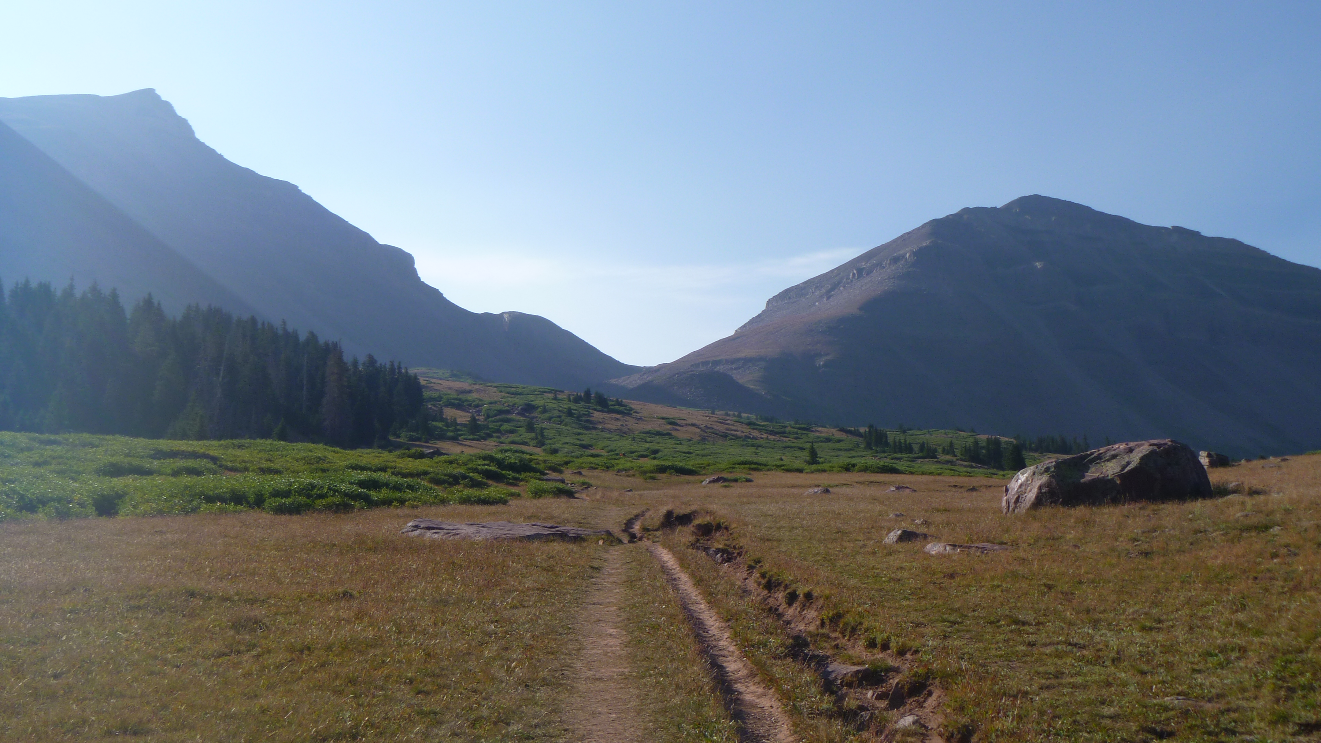 Day one is “Let’s wander around a bit until we find a good place to camp” day. I had the fortune of running into the friendly and energetic forest service employees on my way in and asked about the best places to camp. I already had a couple of sites planned out by the greater lakes in the area: *Dollar Lake, and Henrys Fork Lake. They informed me that Dollar Lake is the better of the two in terms of camp sites, but they also could have just been trying to contain people to one area. That being said, Dollar Lake is farther in giving you less miles to tackle on summit day (believe me, you’re going to love yourself for it). Dollar Lake is about 7 miles from the trailhead. The beginning of the trail starts off with a lot of up and down-hill, and mellows out a bit mid-way. Maybe 3/4ths along the way it opens up into a large (and absolutely beautiful) basin.