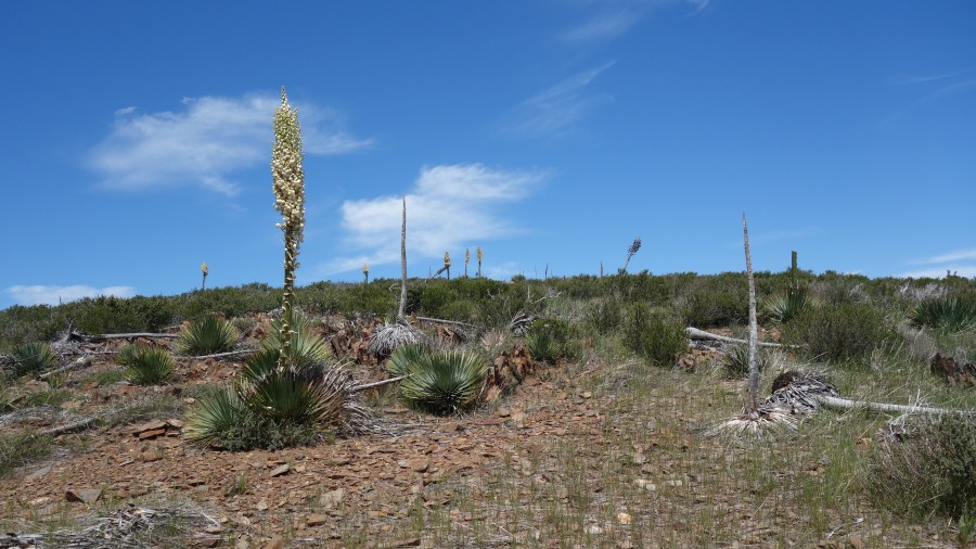 It’s so easy to get lost in moments like this on trail, you tend to forget that you have basic survival things to take care of. I pulled out my phone to double check my next water source. A water tank seven miles ahead. I totally have enough water to make it and then some, but I might as well stop there anyways. The trail progressed the way it does, transitioning from great views to a serene landscape with nothing for miles, with an occasional “OH what’s that?!” planted in the middle. This time it was plants I’d seen popping up from the desert floor here and there, but this time I got a really good up close view. I don’t know what these are called, but they are really cool.