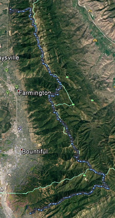 It starts in what’s called “The Avenues”. A rich neighborhood basically overlooking Salt Lake City. I’ve done the Twin Peaks hike up there which amounts to walking over hills basically. It starts at the base of the mountain and goes all the way up to the ridge, which I’ll hike all the way to Francis Peak, then back down. It looks pretty straight forward for the most part, the beginning may be a little spooky hiking up the spine to get to the ridge line, but it’s doable.